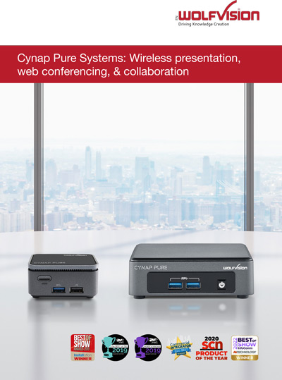 Cynap Pure Mini on Cynap -tuoteperheen uusin tulokas. Se on jo nimensäkin puolesta pieni kokoinen ja siinä on tarkkaan valitut toiminnot. Näiden johdosta se on helppokäyttöinen ja ideaaliratkaisu mm. pieniin luokkahuoneisiin, neuvottelutiloihin ja pieniin ryhmätyöskentelytiloihin.